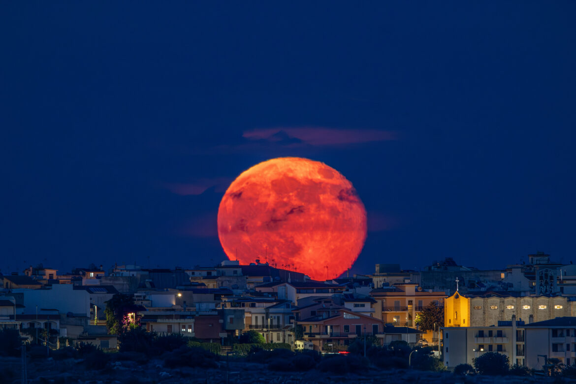 Foto di GIANNI TUMINO: LA LUNA PIENA DI NOVEMBRE SORGE SULLA CITTA DI ISPICA (RG)