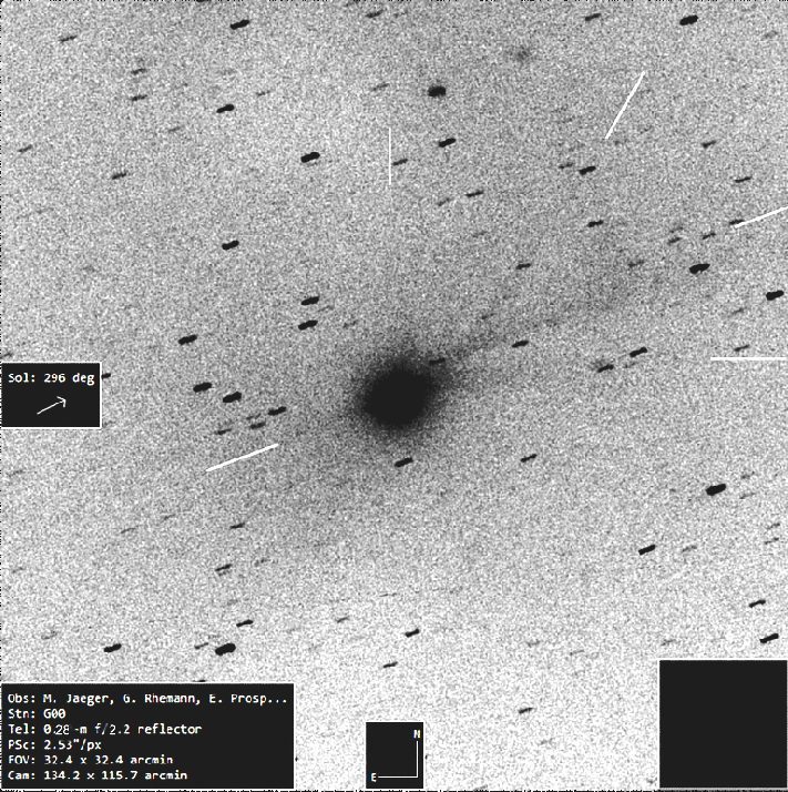 Nuove foto scattate da astronomi amatoriali l’8 novembre rivelano che apparentemente ha sviluppato quattro o cinque code. “Al momento dell’esposizione, la cometa si trovava a soli 7°-10° sopra l’orizzonte”, afferma Michael Jaeger, che ha eseguito insieme ad altri la foto riportata in apertura. “Alla fine, il crepuscolo mattutino ha interferito con l’osservazione, che è avvenuta sotto la luce lunare. Abbiamo osservato da una posizione montuosa.”