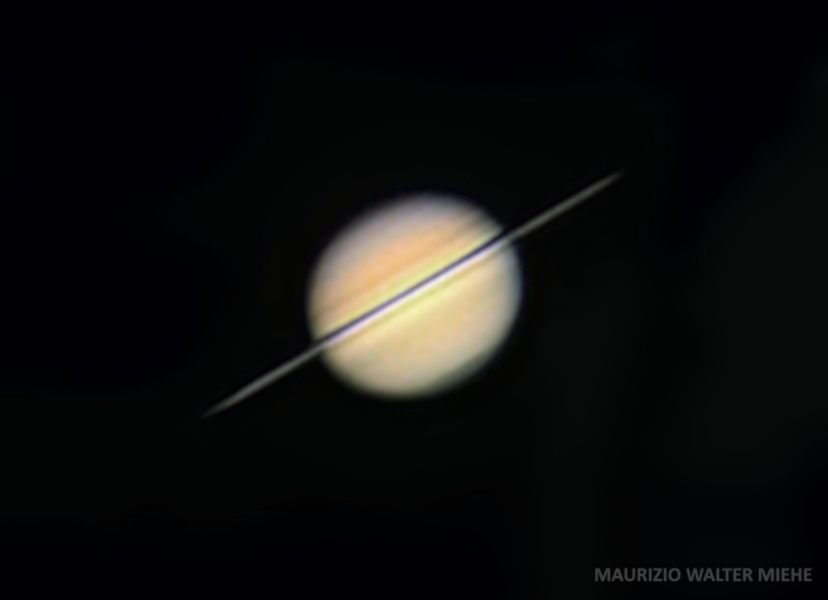 A quasi due mesi dall’opposizione una serata di buon seeing (finalmente!) ha permesso una buona ripresa del pianeta che in questo periodo mostra gli anelli di taglio al loro minimo di visibilità dalla terra.