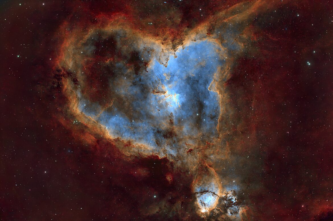 IC 1805 è una nebulosa diffusa le cui polveri e gas hanno formato un grande cuore cosmico con un diametro di circa 250 anni luce.