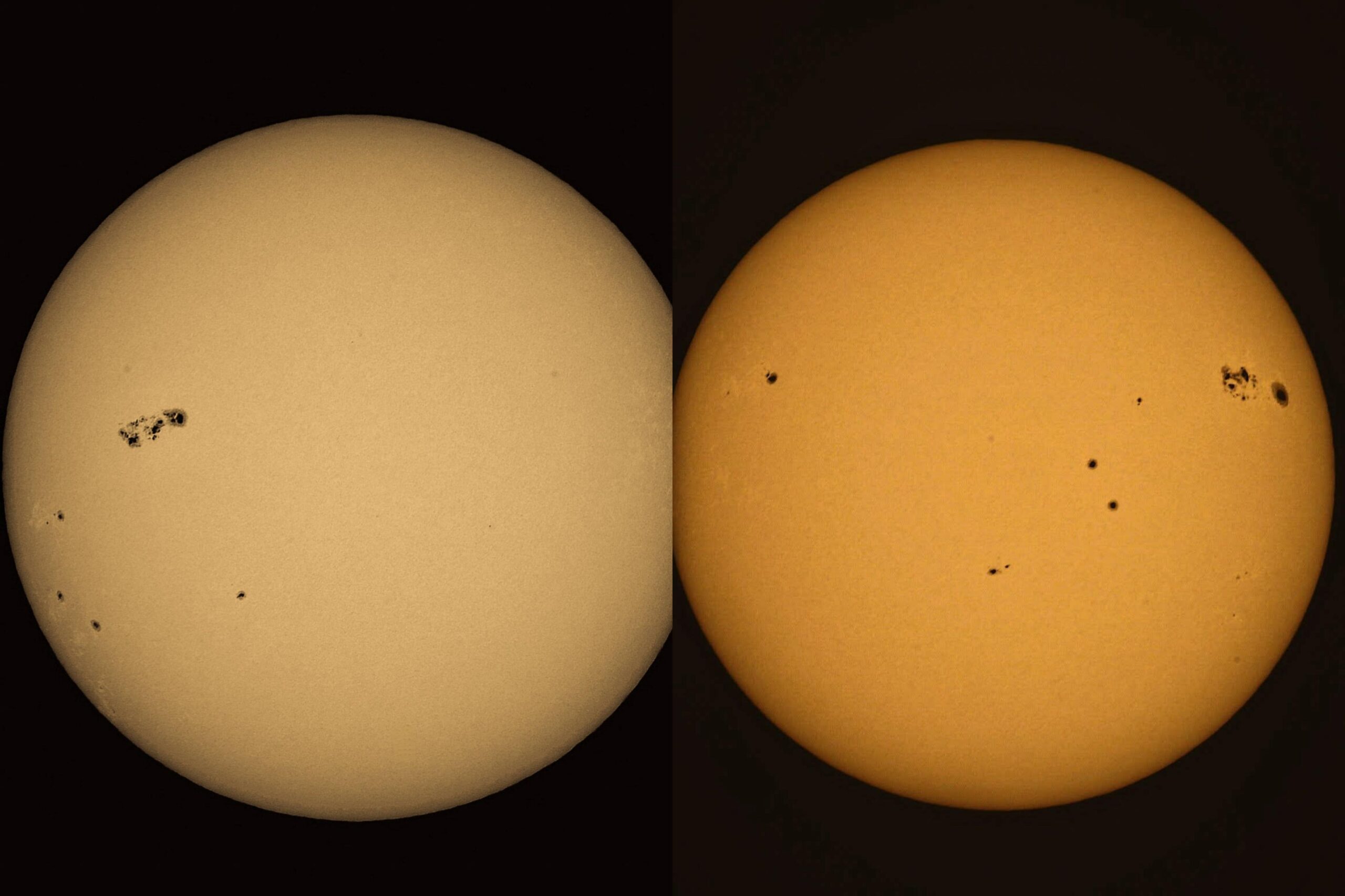 Foto di Giovanni Passalacqua: La macchia solare (14366) regione attiva (prima-dopo) 2 scatti
