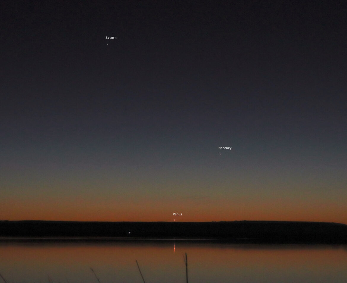 Foto di Roberto Ortu: Venere, Mercurio e Saturno nel cielo serale