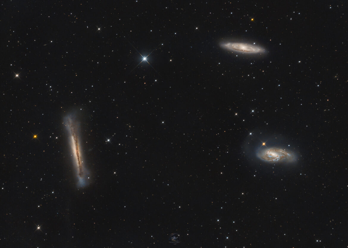 Il Tripletto del Leone è uno dei gruppi di galassie più iconici del cielo primaverile. Situato nella costellazione del Leone a circa 35 milioni di anni luce dalla Terra, è composto dalle galassie spiraliformi M65, M66 e dalla galassia vista di taglio NGC 3628.
