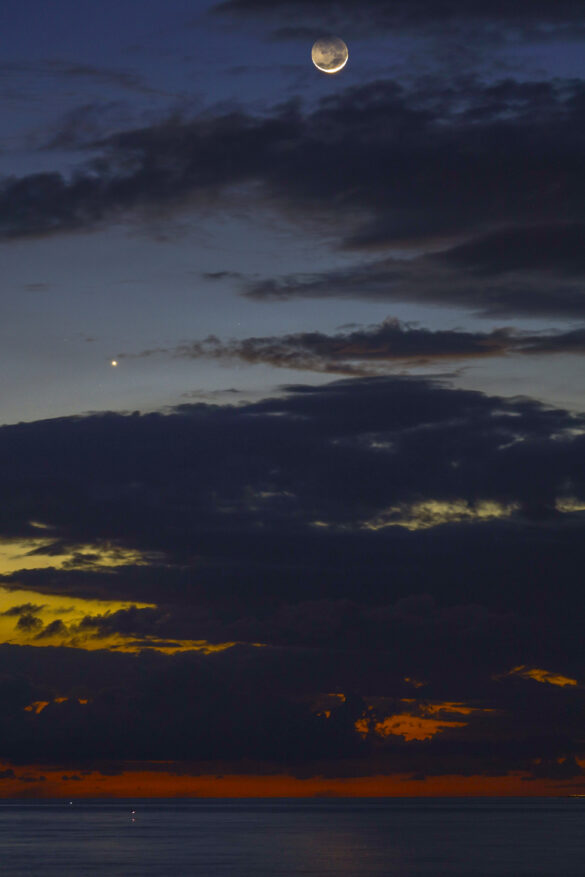 Congiunzione Luna-Venere riflessi sul mare di Punta Secca