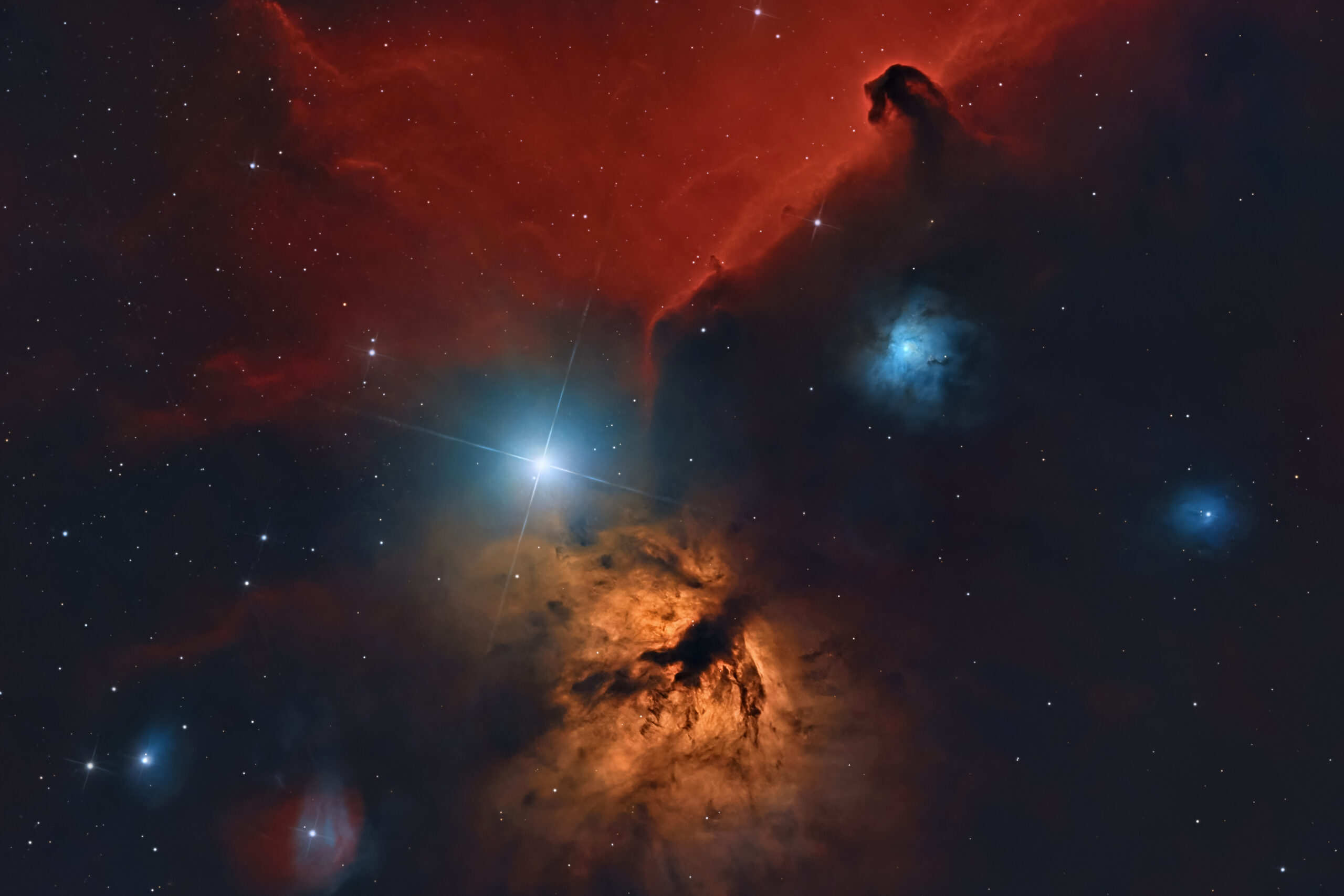 La Nebulosa Testa di Cavallo (nota anche come Barnard 33 o B33) è una nebulosa oscura situata a 1500 anni luce da noi nella costellazione di Orione appena sotto Alnitak, la stella più a est della cintura di Orione.