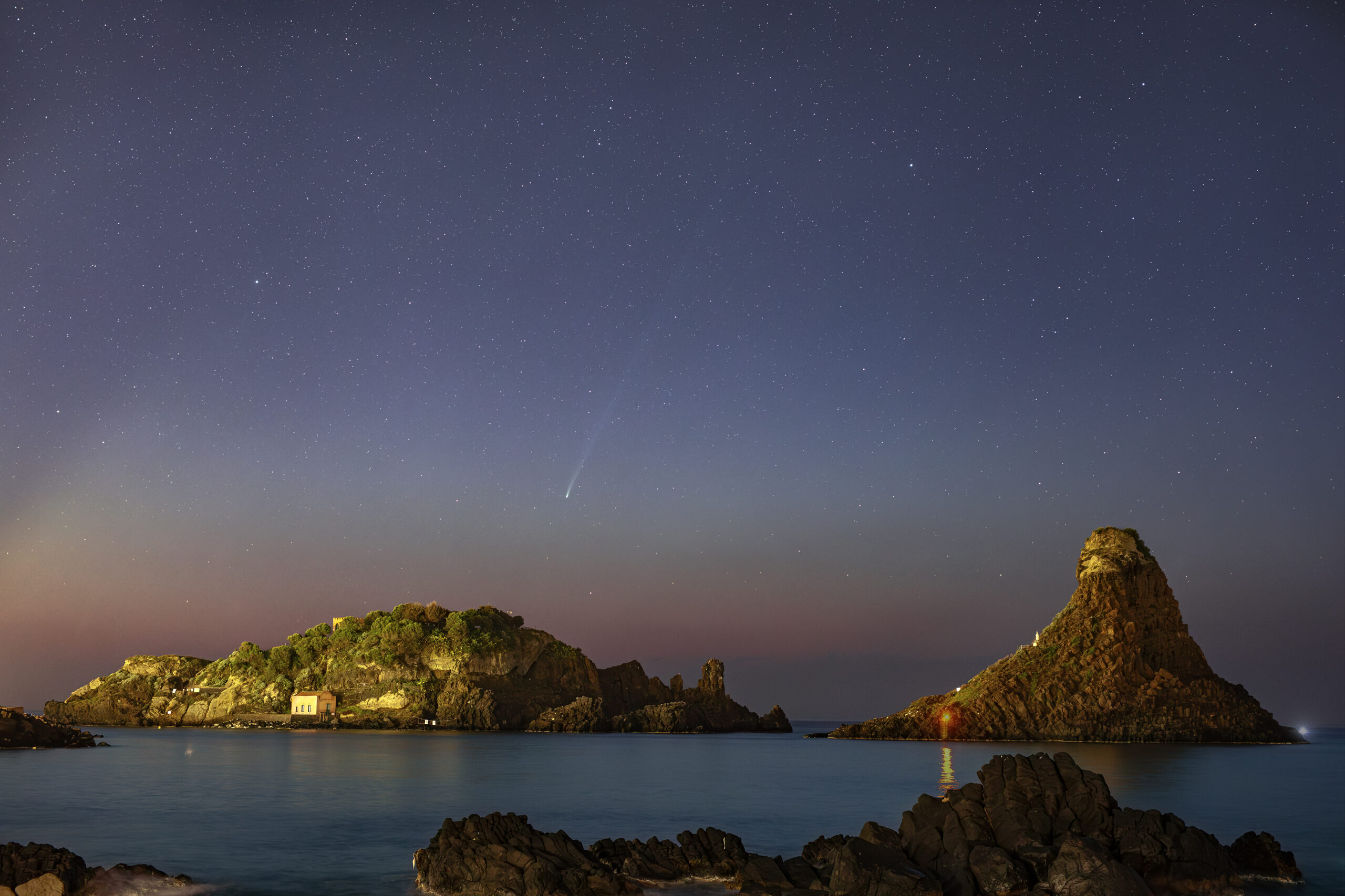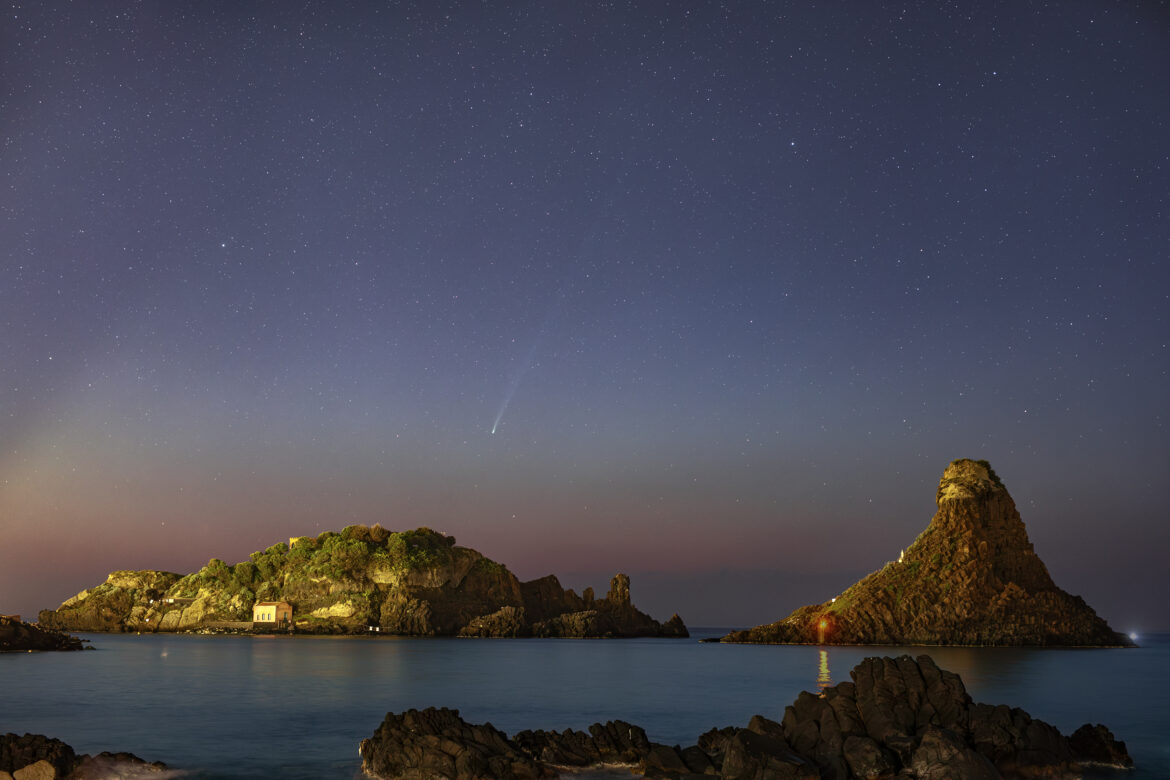 Foto di GIANNI TUMINO: I FARAGLIONI E LA COMETA C/2025 R3 PanSTARRS AL CREPUSCOLO MATTUTINO