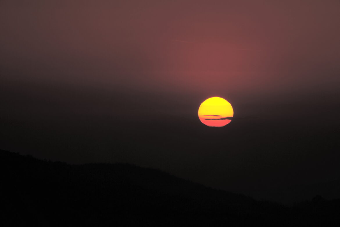 Una rara immagine del raggio verde ripresa al sorgere del Sole alla Sella dei Generali (PC) il 17/04/2026 alle 06:36; esposizione 1/6400 s f/7.1 ISO 100, lunghezza focale 400 mm ritagliata a 1584 mm, software Sony Edit.